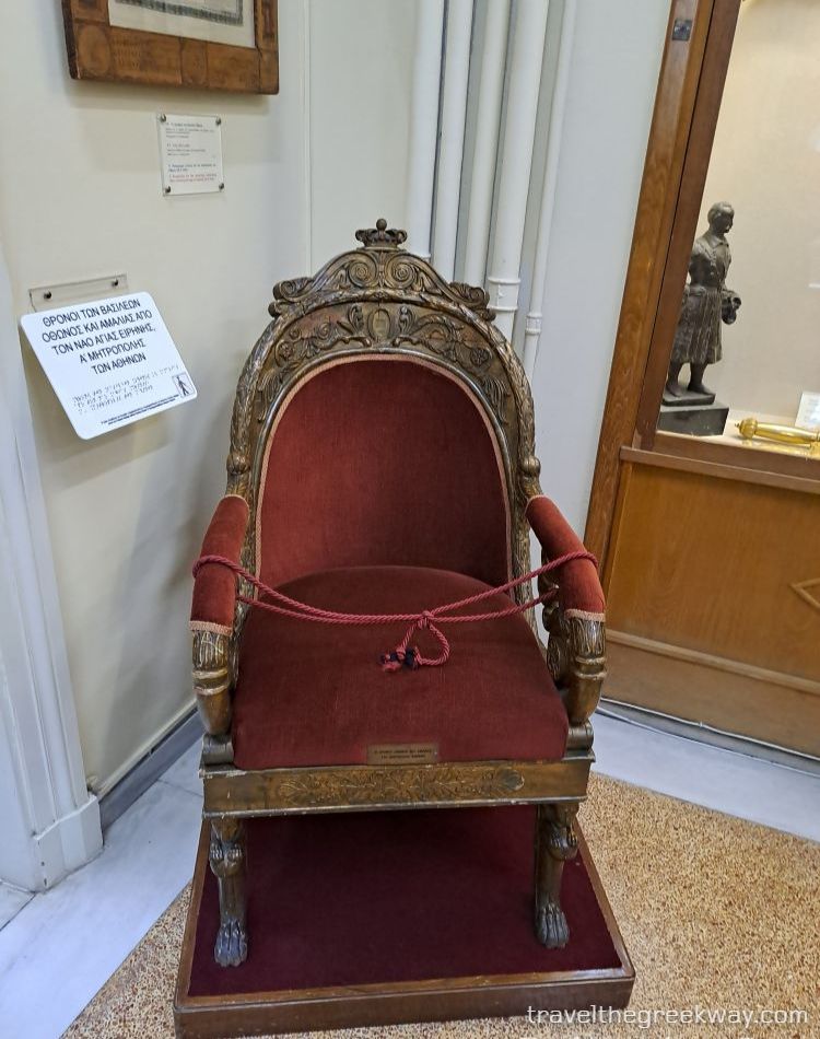 - Kings Otto and George I Items: The throne used by King Otto (1833-1862) and later by George I (1863-1913), wedding crowns, and beautiful costumes for the Ladies in Waiting of Queen Olga.
