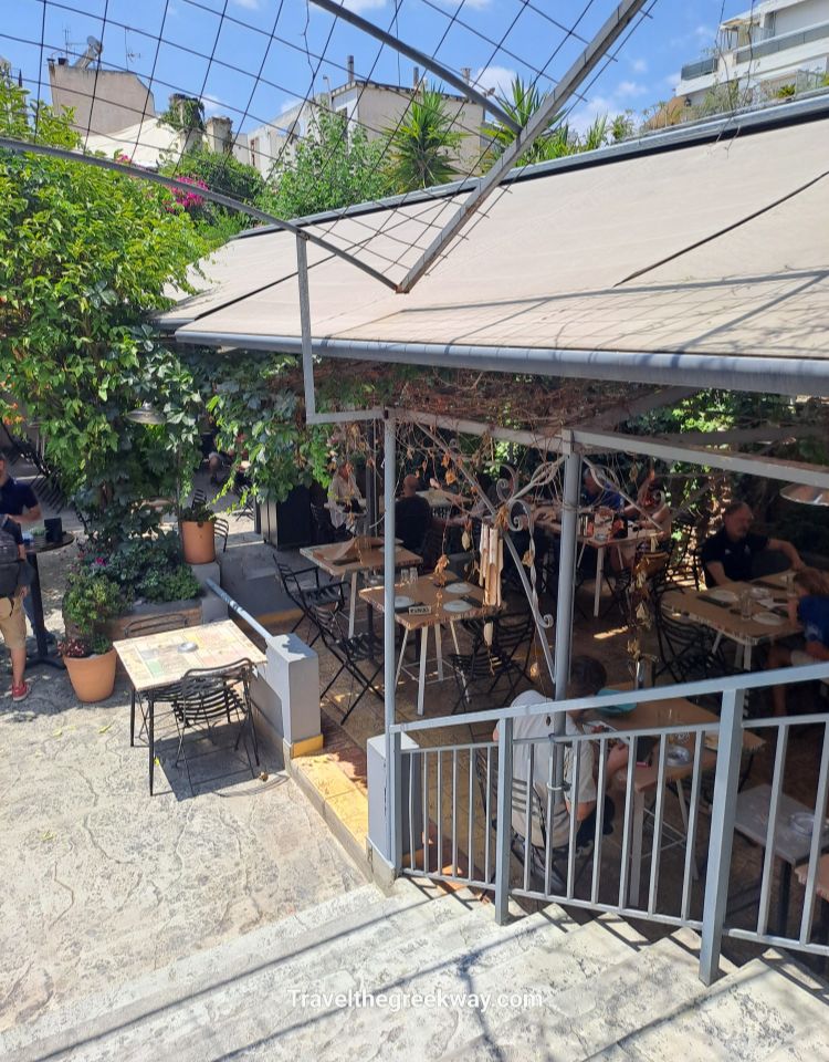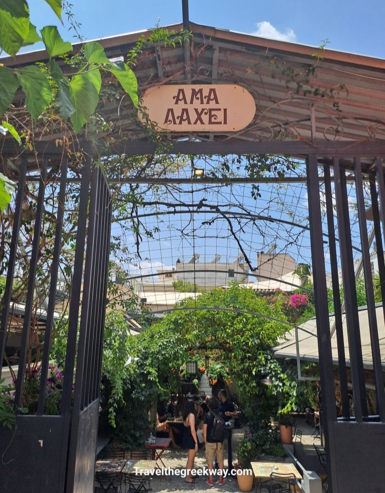 Last stop is at Kallidromiou 69 st, the Ama Lachi tavern in a lovely yard full of trees and flowers.