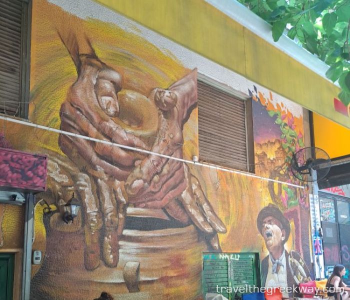 - Tzavella Street – Bright, colorful pieces that add life to the area.