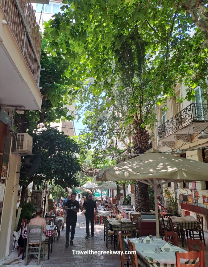 Rozalia has a lovely yard, whereas Achilleas serves its traditional Greek food in the pedestrian area.